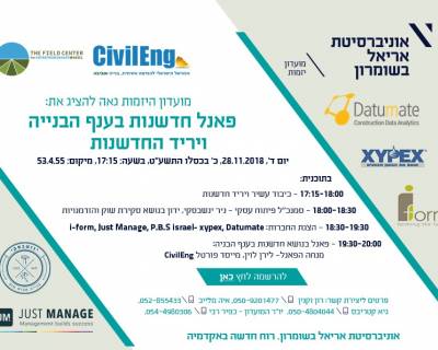 קבוצת CivilEng ומועדון היזמות של אוניברסיטת אריאל, חברו יחד לערב ייחודי בנושא חדשנות בבנייה.